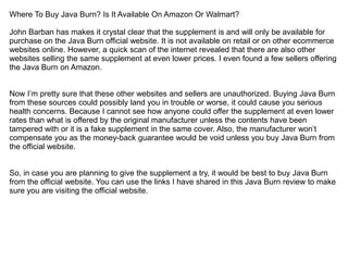 This fantastic product is commonly utilized to improve your metabolism helping. Java Burn which costs 49 a pouch contains natural components that when. John Barban Java Burn Amazon is a dietary supplement which promises to boost metabolism and reduce weight gain.